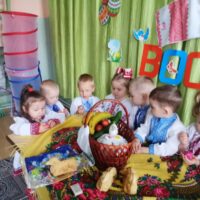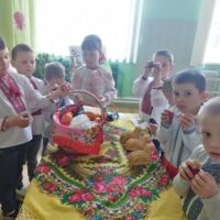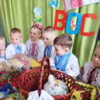 Так, 22 квітня в нашому закладі відбулася музична розвага «Писанка Великодня». Дітей знайомили з історією свята Пасхи, народними звичаями та традиціями. Вихованці, в різних видах зображувальної діяльності, прикрашали писанки. Під час свята діти грали в ігри, співали пісні про свято, писанку, вербу; танцювали таночки; грали інсценівки, складали великодній кошик та пригощались пасками.