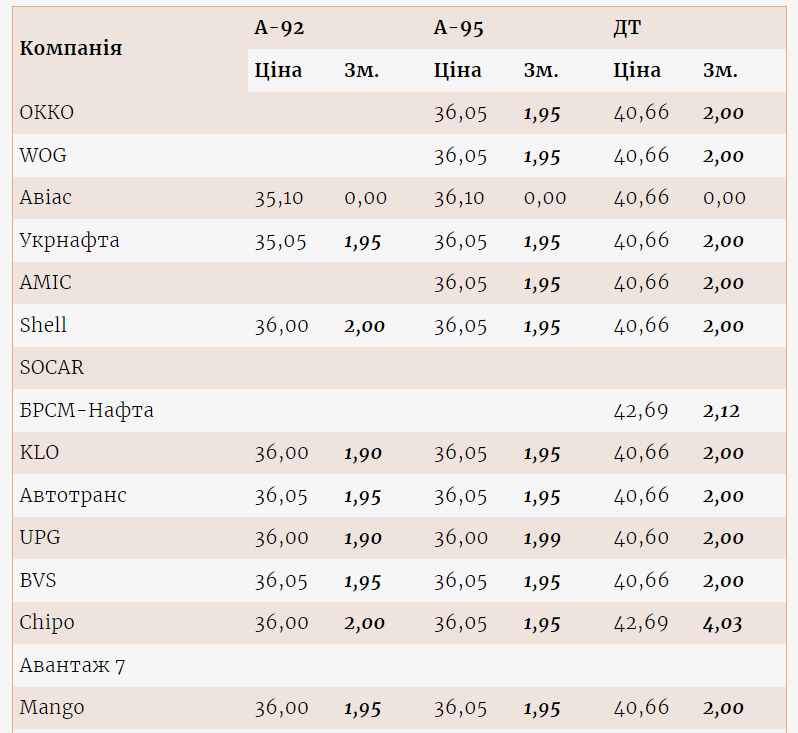 Станції компанії «Укрнафта» (552 АЗС) теж підвищили ціни. Бензин марки А-92 подорожчав до 35,05 грн/л, А-95 – до 36,05 грн/л і ДП – до 40,66 грн/л.