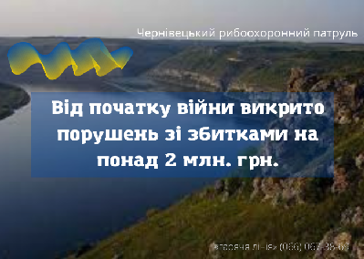 Від початку війни державними інспекторами Чернівецького рибоохоронного патруля проведено 198 рибоохоронних рейди та викрито 161 порушень природоохоронного законодавства, з яких 17 за ч.4 ст. 85 КУпАП. Також складено 100 протоколів за ч. 3 ст. 85 КУпАП (порушення Правил рибальства), два за вилов червонокнижної риби (ст. 90 КУпАП), два за ст. 88 -1 КУпАП та один за ст. 85 ч. 5 КУпАП.