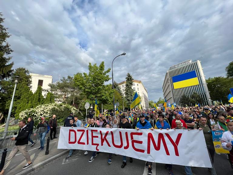 У неділю, 29 травня, українці, що перебувають у Варшаві, вийшли на марш. Таким чином вони подякували польському народу за гостинність, повідомляє Polskie Radio.