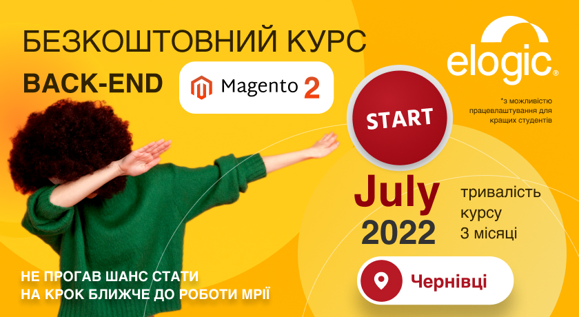 Сьогодні, 1 червня, Elogic Academy відкриває реєстрацію на новий потік курсу з програмування «Magento 2: Back-end» у Чернівцях. Курс безкоштовний, щоб зареєструватися, перейдіть за посиланням.