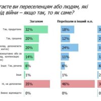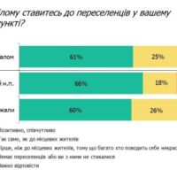 Люди, яким самим довелось переїхати в інше місто, співчувають більше – 66% опитаних, проти 60% тих, хто не переїжджав. Негативно ставляться до переселенців лише 6% українців. Проте, позитивне ставлення переважає в усіх регіонах.