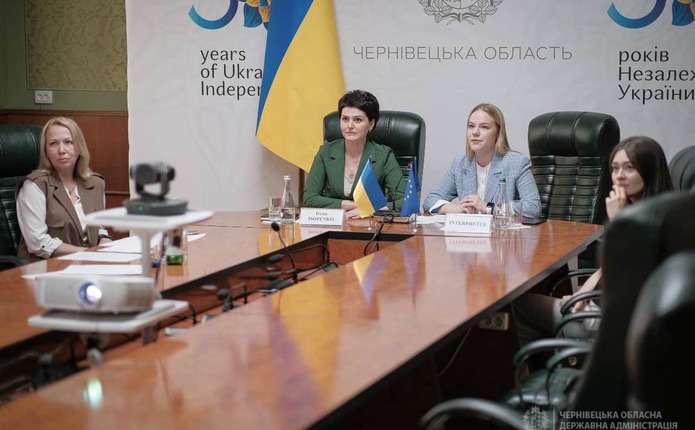Вона розповіла європейським колегам про допомогу, яку Чернівецька область отримує від партнерських регіонів з ЄС, діяльність міжнародних організацій у краї, роботу Гуманітарного штабу та підтримку, яка надається внутрішньо переміщеним особам.
