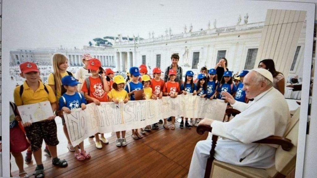 Вона зазначає, що спочатку Папа Римський поспілкувався з дітьми. Під час спілкування Назар подарував Папі малюнок.