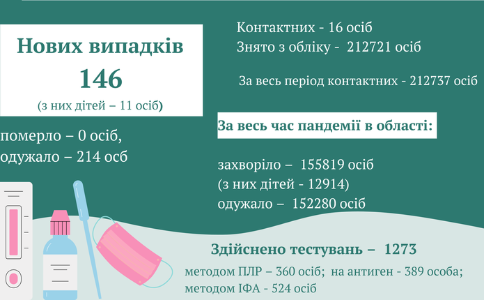 З початку реєстрації коронавірусної інфекції на території Чернівецької області всього виявлено 212737 осіб, що контактували із хворими на COVID-19.