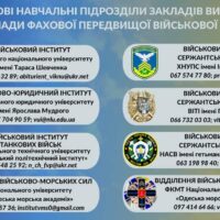 З 30 липня до 14 серпня цього року абітурієнти мають змогу подати заяву та відповідні документи на вступ безпосередньо до приймальної комісії вищих військових навчальних закладів, закладів фахової передвищої військової освіти та військових навчальних підрозділів закладів вищої освіти. Оформлення особових справ таких вступників здійснюється безпосередньо у військових навчальних закладах.