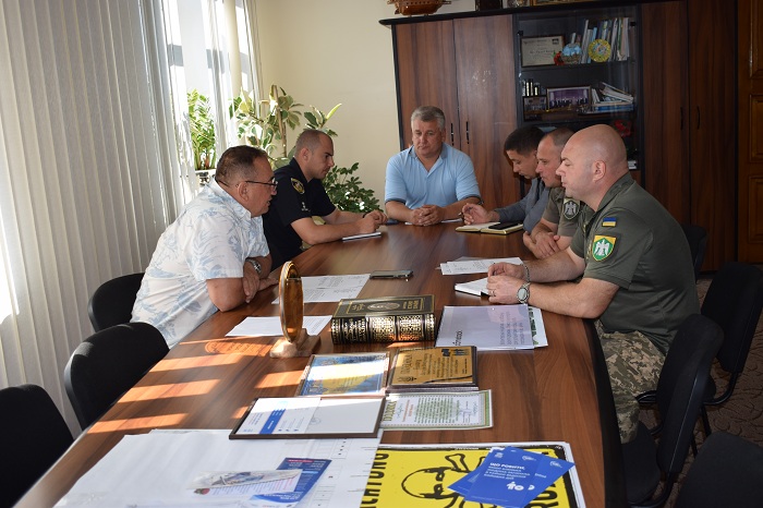 Про проведення мобілізації та дотримання правопорядку на території громади йшлося сьогодні в ході наради міського голови Василя Козака за участю першого заступника міського голови Івана Гангала з начальником відділення поліції №1 (м.Сокиряни) Сергієм Лунгою, начальником СП відділення поліції (м.Сокиряни) Максимом Димитровим, т.в.о. начальника другого відділу Дністровського районного територіального центру комплектування та соцфіальної підтримки Іваном Серебрянським та його заступником Василем Мидриганом.