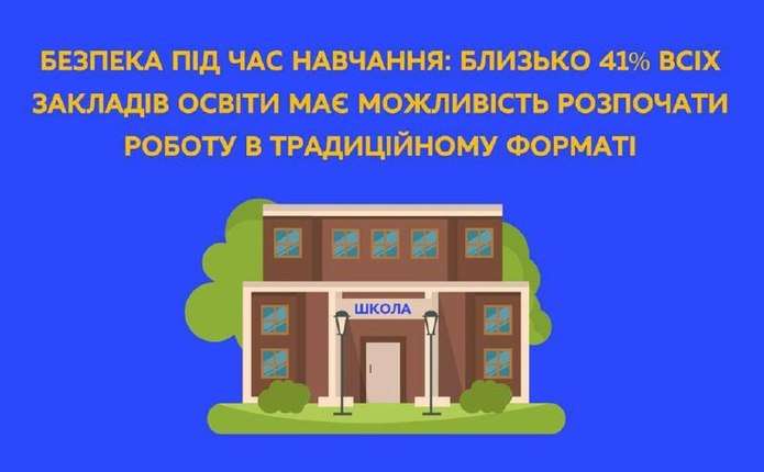 «Найвищі показники готовності до освітнього процесу в очній формі у Львівській області – 83%, Чернівецькій – 78% та місті Києві – 68%. Інші області продовжують активну роботу у створенні належних і безпечних умов у закладах освіти для навчання офлайн. У підсумку – нині близько 41% всіх закладів освіти має можливість розпочати навчання в традиційному форматі», – зазначив міністр, передає Чернівецька ОВА.