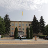 Над адмінбудівлею Сокирянської міської ради урочисто замайорів синьо-жовтий стяг