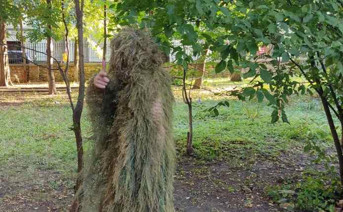 Матеріали ми брали у волонтерів за адресою вул. Заньковецької, 5. Там у них і збирають речі на різні потреби. Єдине, нам кажуть який колір використовувати більше, а який – менше. До прикладу, перша химера була у Миколаївську область більш сіра, під сухостій та пісок, а друга, на Луганщину, зеленіша.
