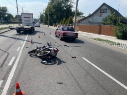 Водій автомобіля ВАЗ допустив зіткнення з мотоциклом.