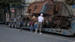 Всередині знищеної САУ, яка розміщена на виставці спаленої техніки на Соборній площі, виявили нерозірваний боєприпас.