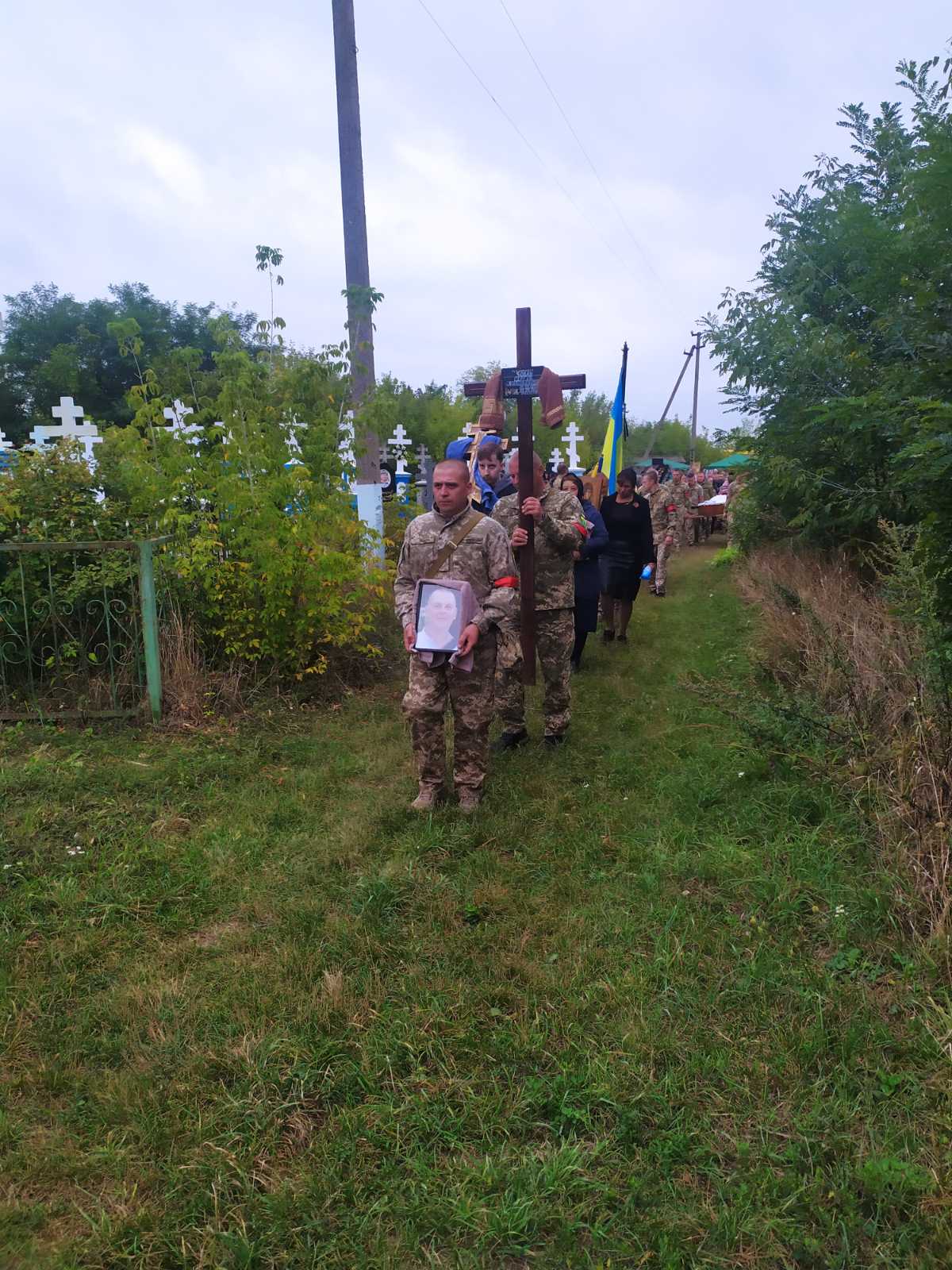 Поховали загиблого захисника на кладовищі у селі Білоусівка, де Сергій Чобан жив, виховував дітей та сумлінно працював.