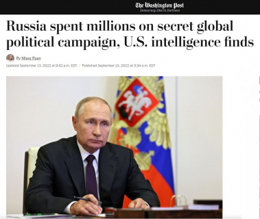 З 2014 року Росія витратила на посилення власного політичного впливу за кордоном щонайменше 300 мільйонів доларів, йдеться в огляді американської розвідки. Про це журналістам CNN, Reuters, New York Times, Washington Post та інших видань повідомили неназвані високопосадовці адміністрації президента США.