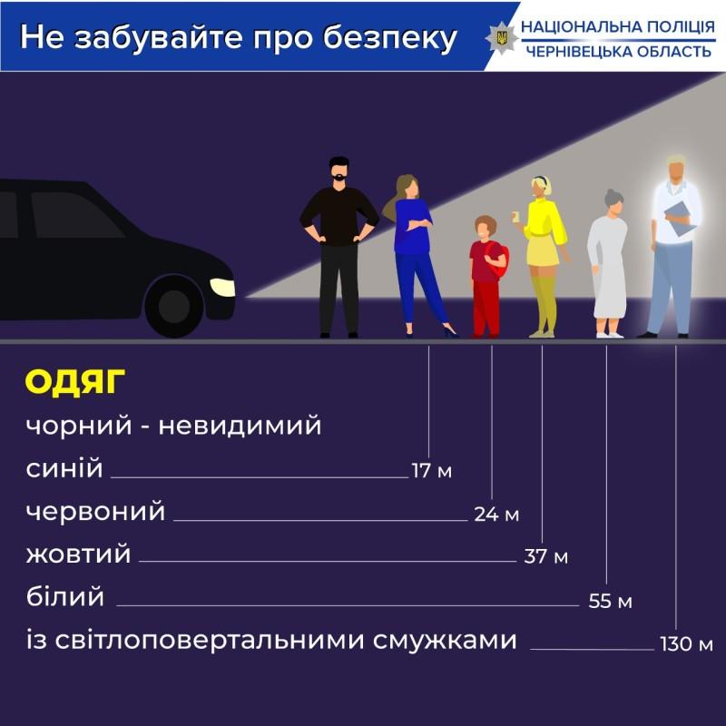 Поліція Буковини закликає пішоходів використовувати світлоповертаючі елементи на одязі