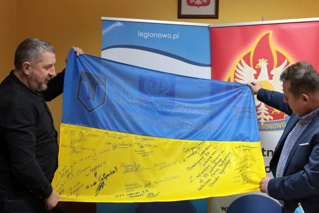 На знак вдячности голова Вижницької районної ради Михайло Андрюк передав полякам прапор України, який підписали та передали бійці 93 окремого батальйону територіальної оборони Вижницького району.