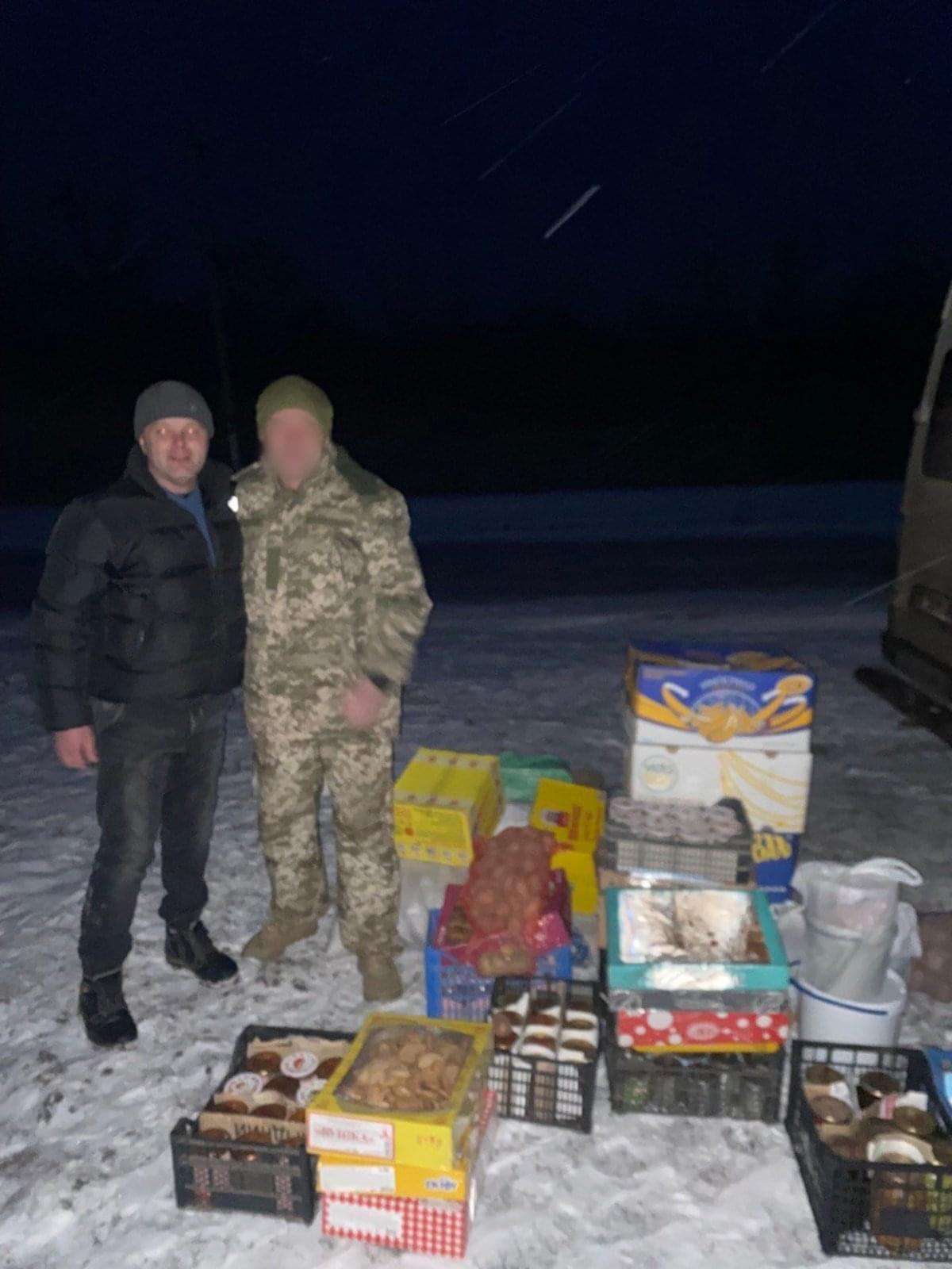 Окопні свічки, маскувальні сітки, овочі фрукти, домашні страви, консервоване тушковане м’ясо, солодощі та багато іншого захисникам доставили волонтери Костянтин Ярмійчук та Роман Коваль.