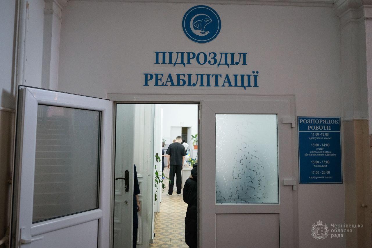 16 лютого, на базі Чернівецької обласної клінічної лікарні розпочав роботу оновлений підрозділ реабілітації, де надаватимуть відновлювальну допомогу військовослужбовцям, хворим із травмами опорно-рухового апарату, пацієнтам з неврологічними захворюваннями, а також людям, які  потребують реабілітації після інсульту, інфаркту та інших недуг.