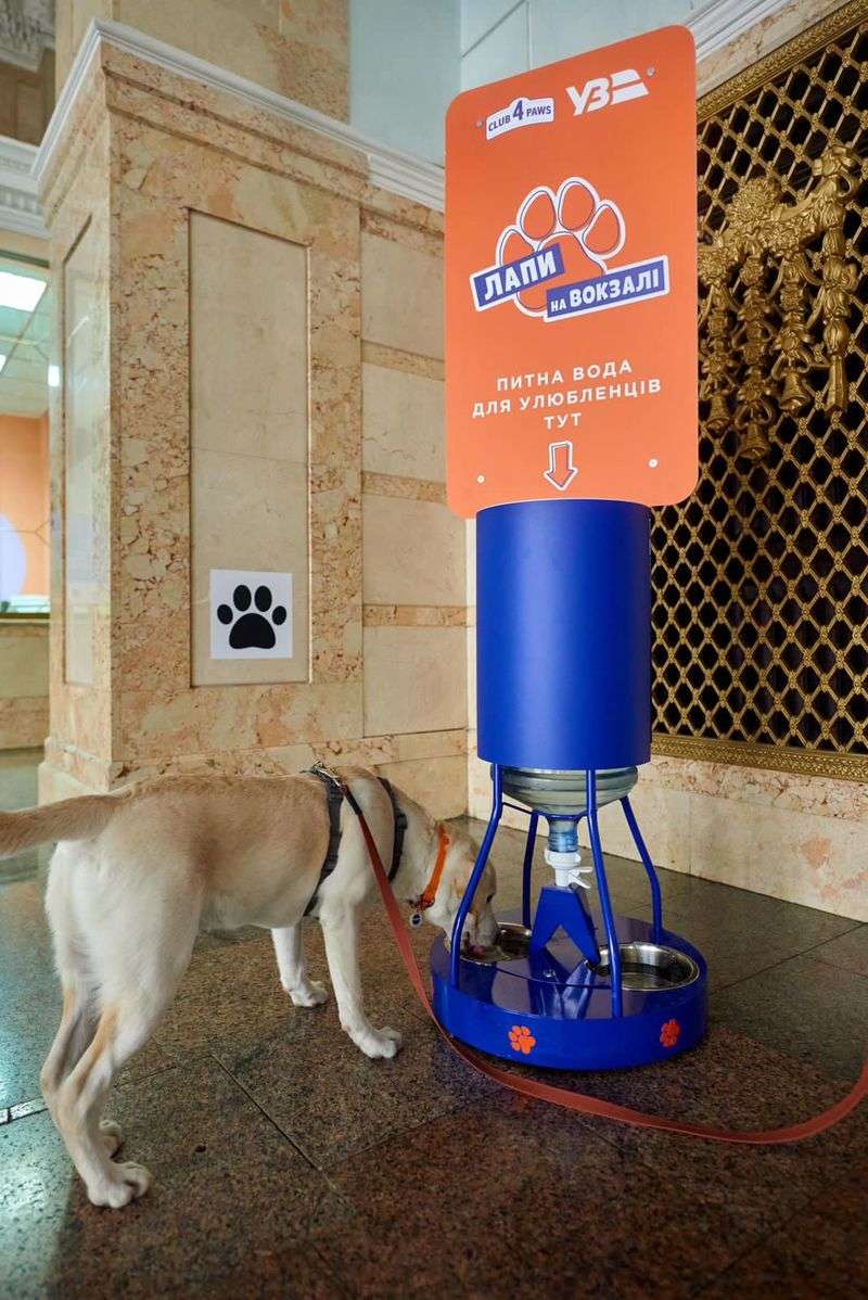 Укрзалізниця та бренд корму для тварин CLUB 4 PAWS від українського виробника Kormotech LLC / ТОВ Кормотех забезпечили 11 найбільших вокзалів країни зручними дозаторами питної води для тварин, що подорожують поїздами. Про це повідомляють на сайті Укрзалізниці.