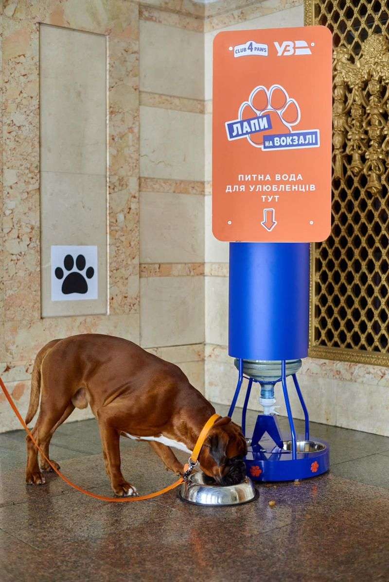 Укрзалізниця та бренд корму для тварин CLUB 4 PAWS від українського виробника Kormotech LLC / ТОВ Кормотех забезпечили 11 найбільших вокзалів країни зручними дозаторами питної води для тварин, що подорожують поїздами. Про це повідомляють на сайті Укрзалізниці.