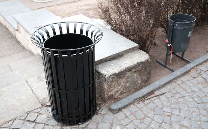 Забороняється використовувати будь-яку тару в якості урн (картонні коробки, відра, кошики тощо) п. 5.16.1 Правил.
