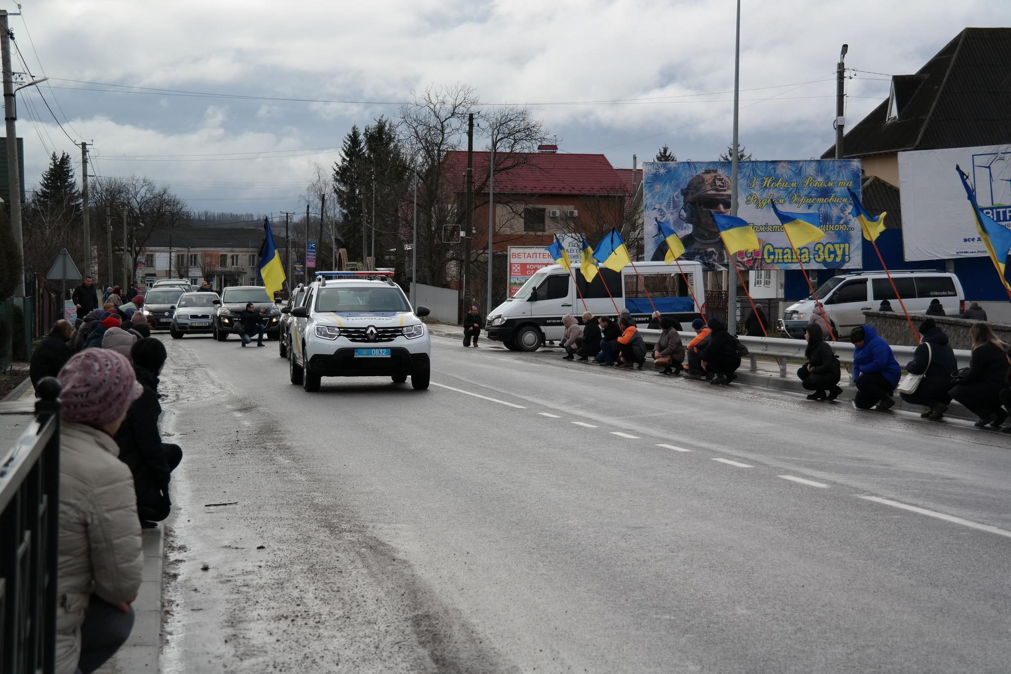 Жителі Сокирянщини навколішки та зі сльозами зустріли кортеж із тілом полеглого воїна, який віддав життя за Україну.