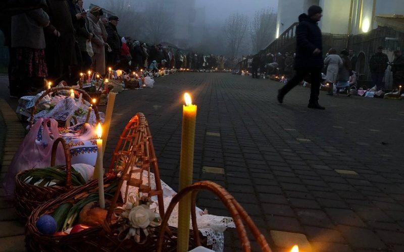 У церкві преподобної Параскеви (Сербської) чернівчани освячували свої кошики не лише на території храму, а вишикувалися у чергу на вулиці М. Заньковецької.