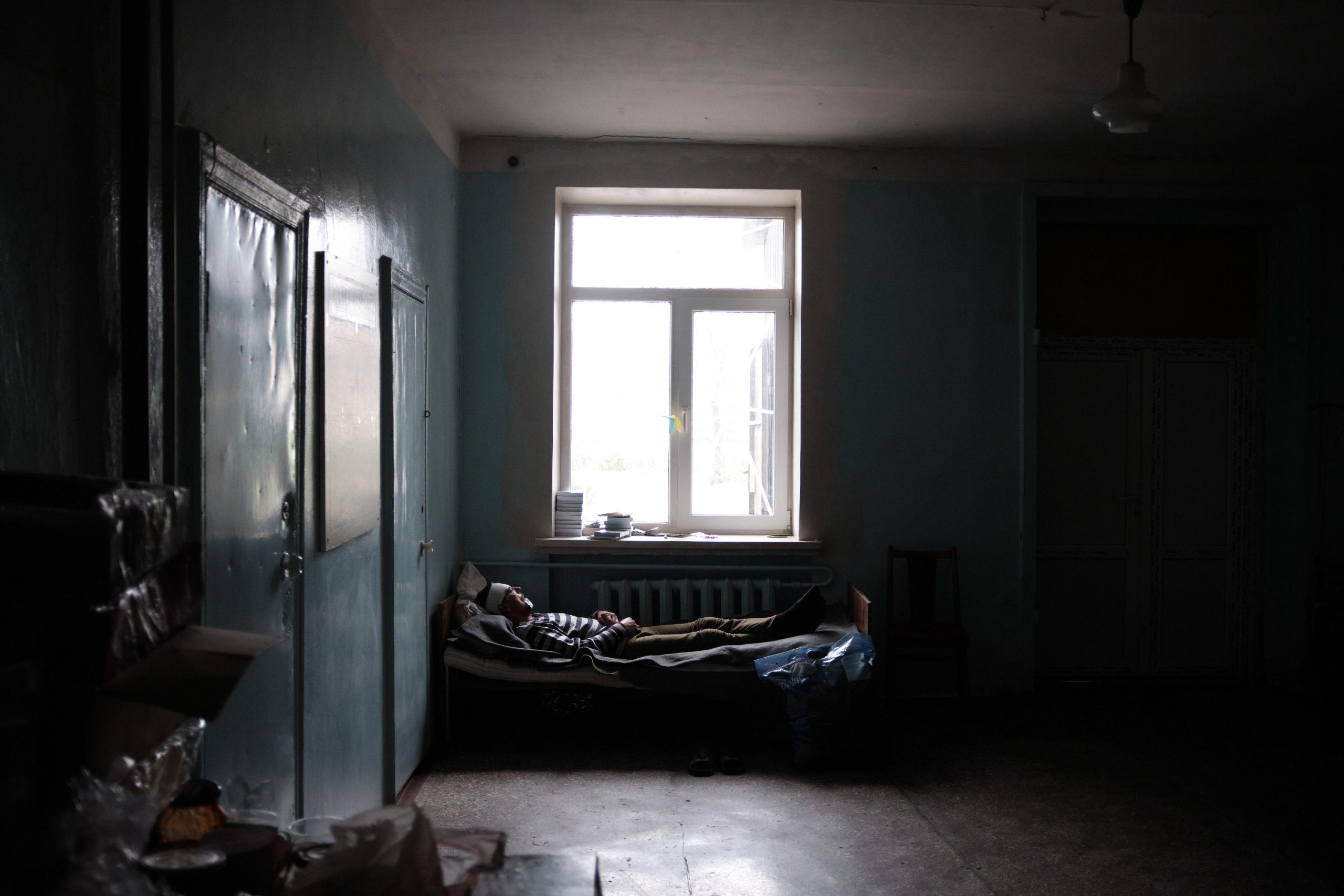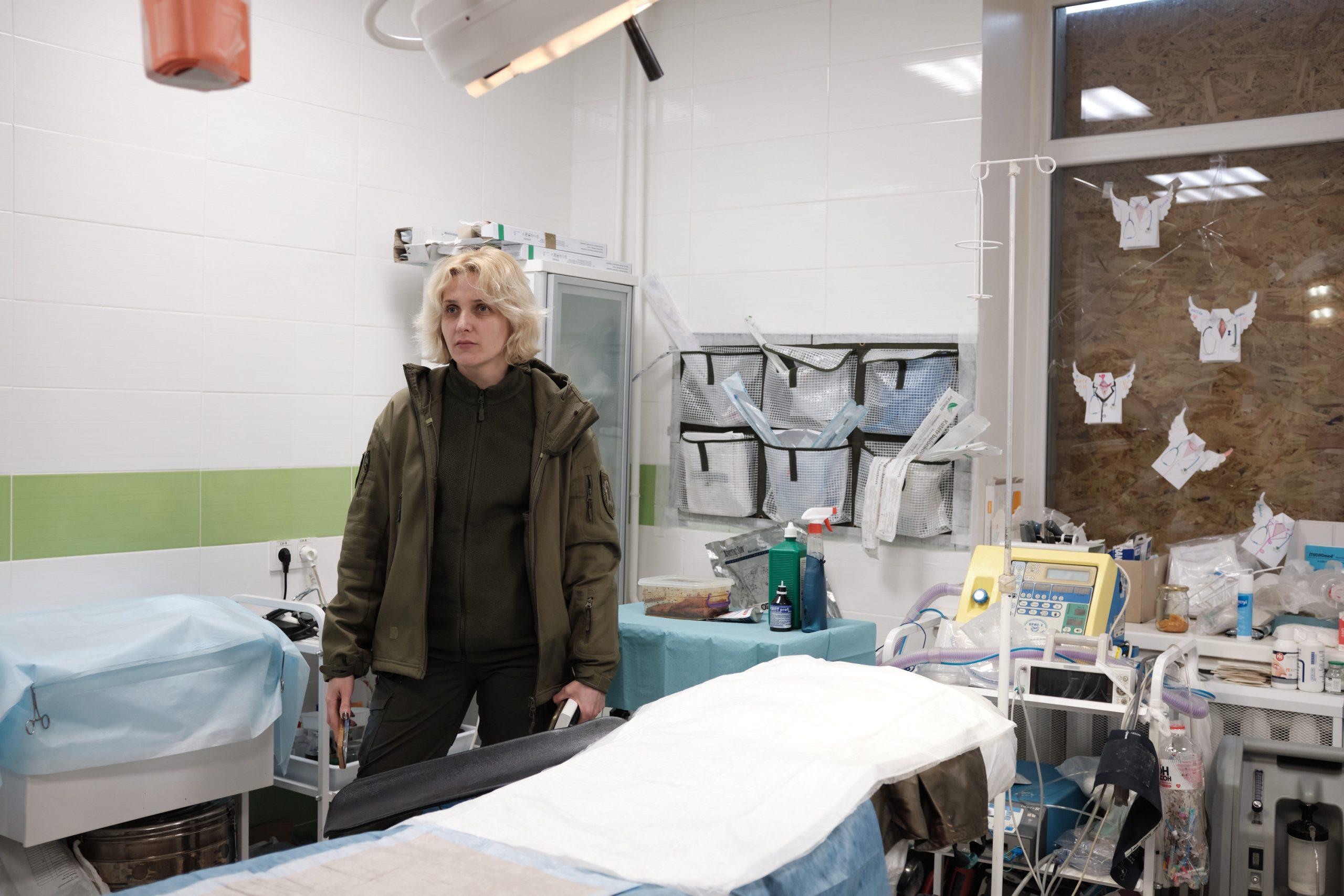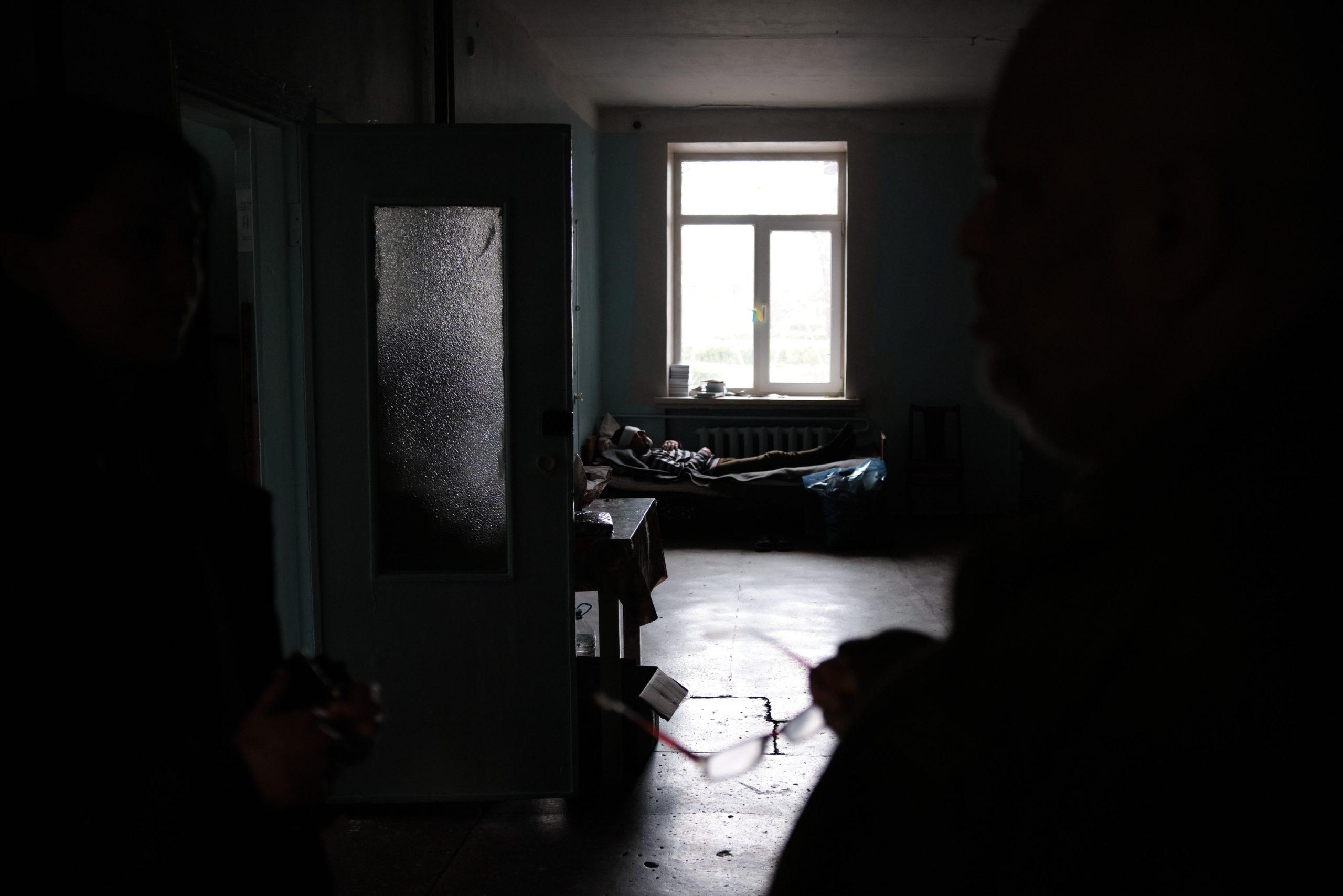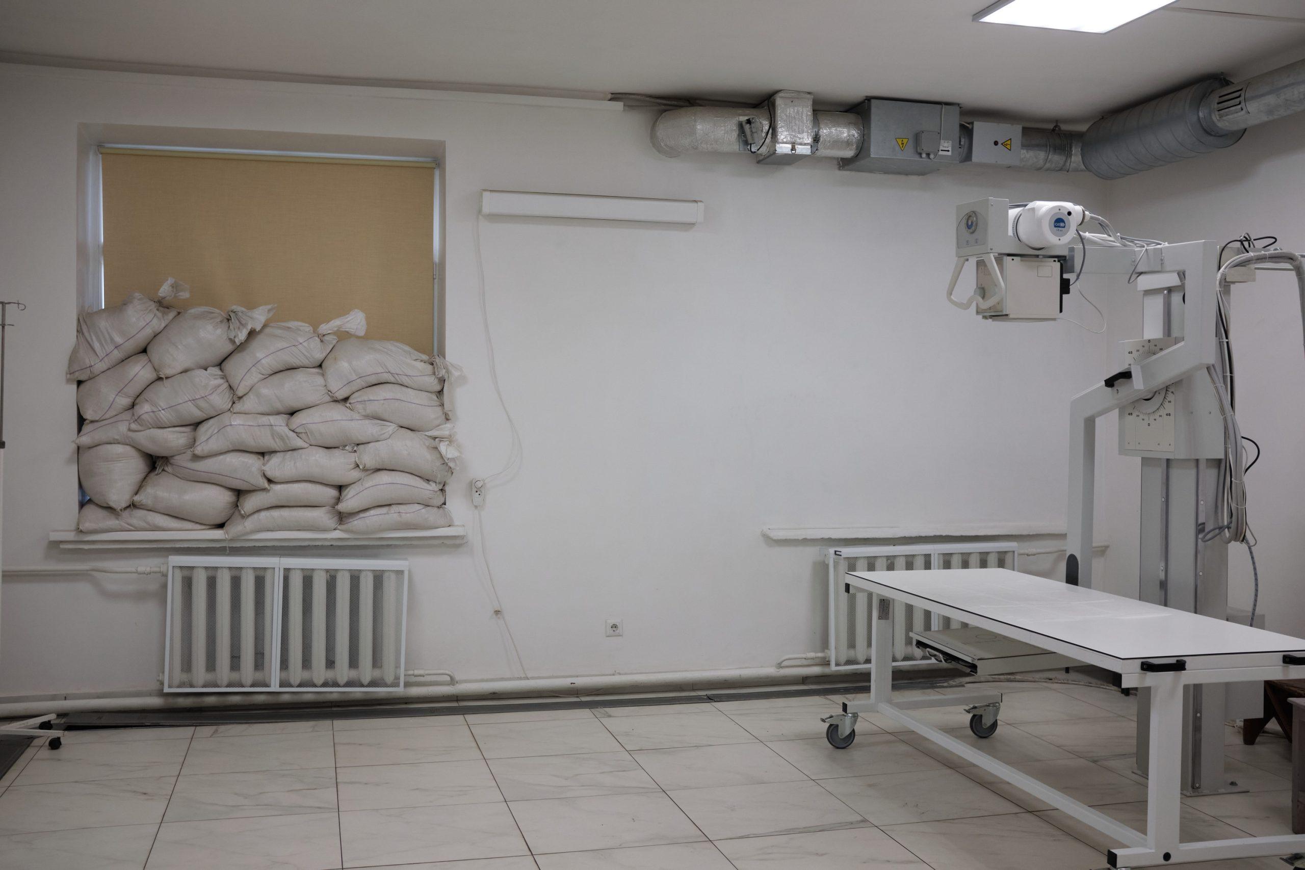 У кімнаті, де раніше було відділення переливання крови, зараз лежать поранені. Вони чекають, поки їх відвезуть далі. Когось у Дніпро або Київ, когось ближче — до Покровська. Залежить від характеру поранення.