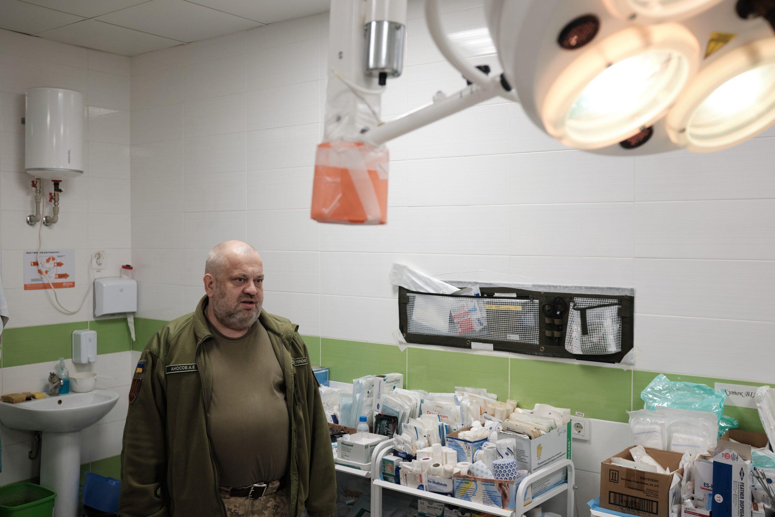 Аносов лікував військових ще у 2015-2016 роках, коли був в АТО. Після — працював у Чернівецькій обласній лікарні, а у лютому 2022 року знову повернувся до служби. З червня він рятує поранених тут, під самим Донецьком. Лікарня повноцінно працює для цивільних; тут є хірургія, травматологія і навіть пологовий. Місцеві лікарі, які залишилися, активно допомагають військовим. За потреби — йдуть в операційну.