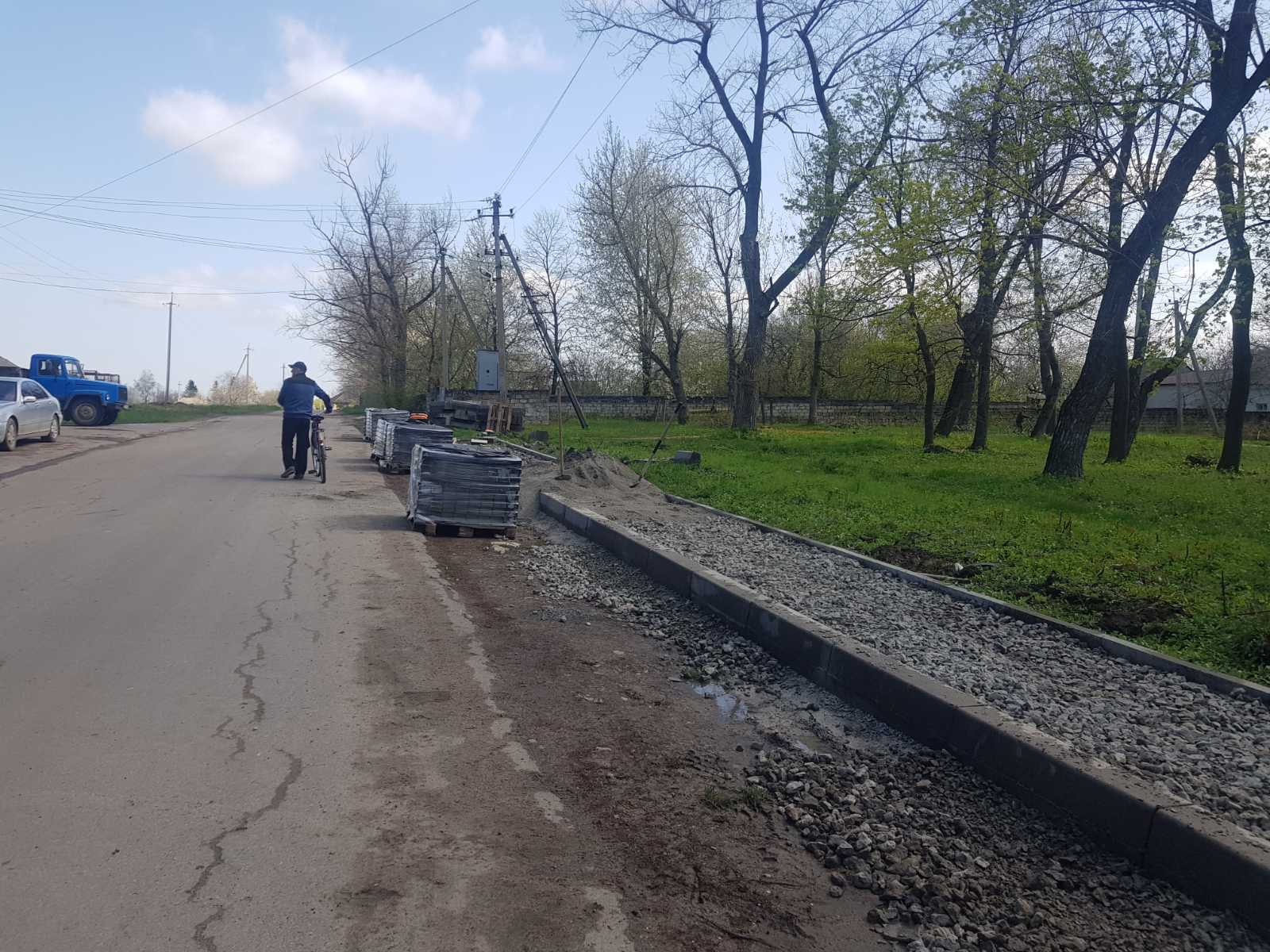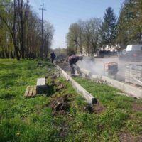 Наразі фахівці встановлюють бордюри та здійснюють облаштування основи під тротуарну плитку.
