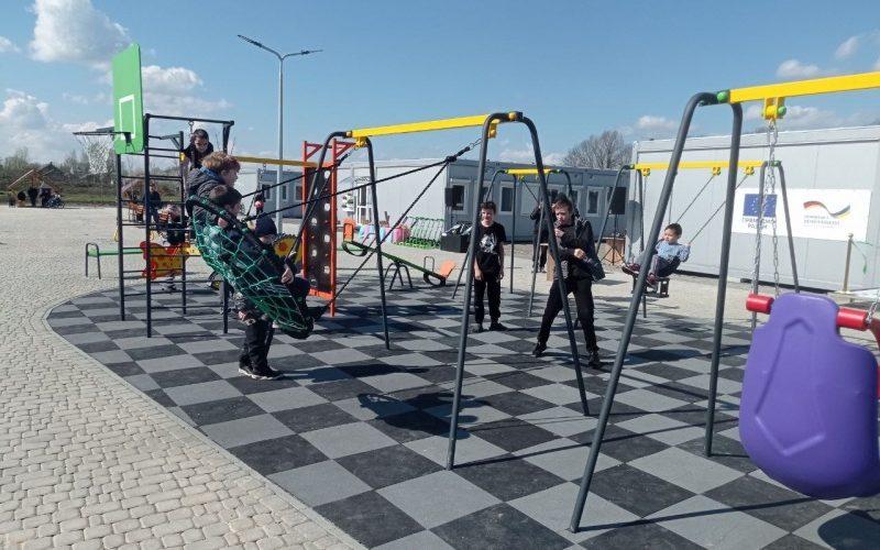 Модульне містечко знаходиться трохи далі від центральної дороги. Раніше тут було поле. За кілька місяців підготували територію. Крім модулів, виклали плиткою двір, зробили дитячий майданчик, встановили лавочки й дві альтанки. Поруч висадили алею дубів.