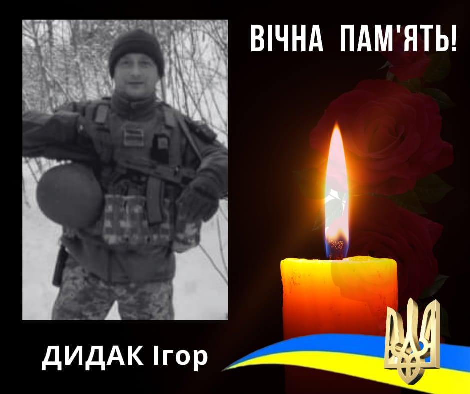«Ігор Дидак став на захист Батьківщини із перших днів повномасштабного вторгнення росії в Україну. Чудовий син, найкращий в світі батько, вірний чоловік, хороший брат», — пишуть у Сокирянській міськраді.