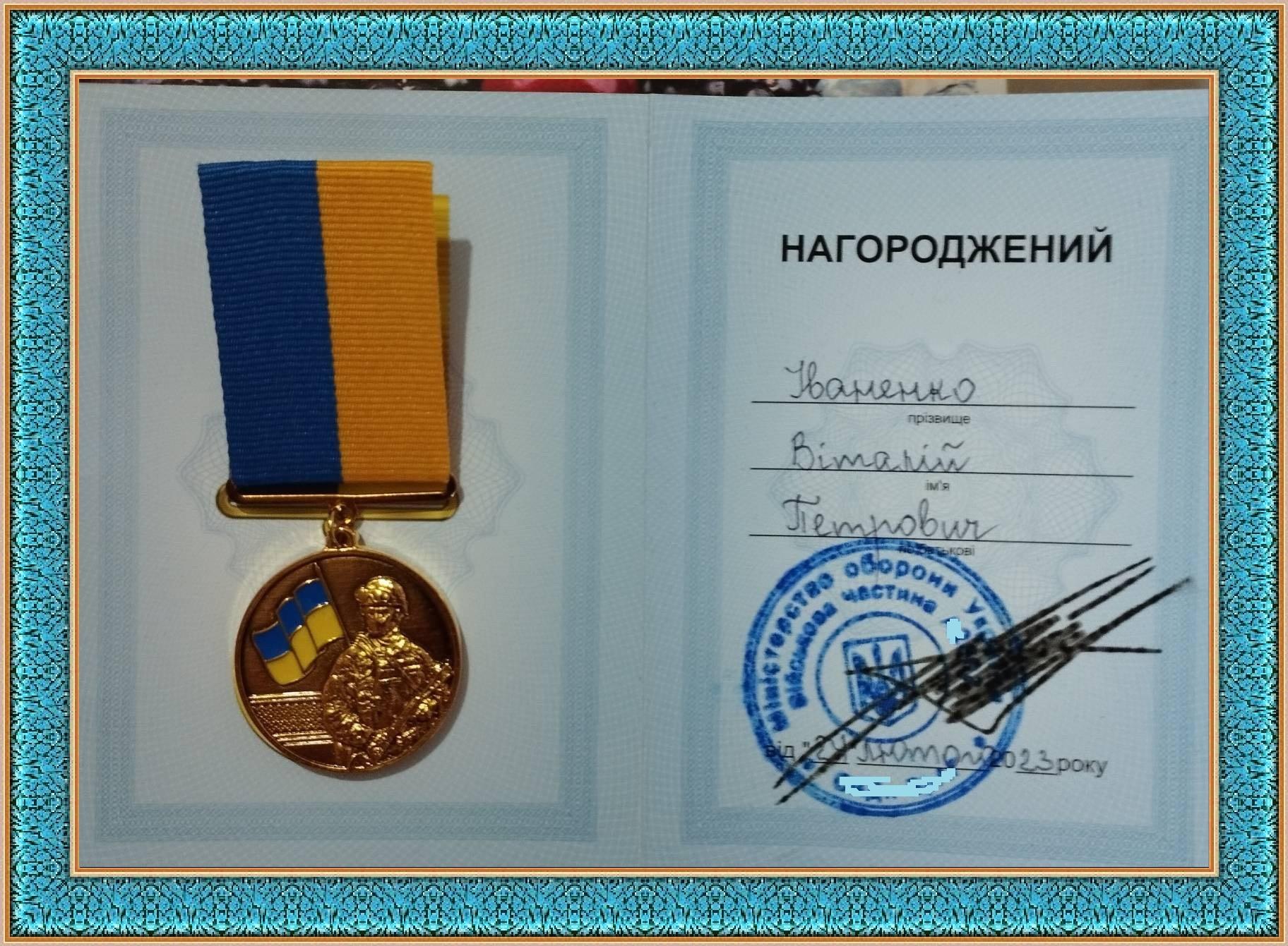 Відзнаки «Захисник рідної землі» Віталій Іваненко удостоївся за сумлінну службу Батьківщині, мужність і самовідданість, виявлені у захисті державного суверенітету та територіальної цілісності України.