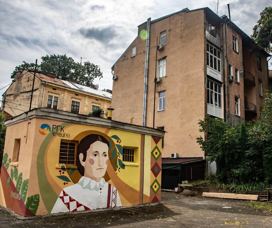 «Мене не обмежували в темах для розпису, тому я вирішила обрати саме буковинських діячів і митців. Шевченка та Лесю Українку ми й так бачимо на багатьох стінописах. Натомість про буковинських митців, які зробили внесок у нашу культуру, — от цього в нас немає. Як буковинка я відкривала для себе багато нових імен, готуючи цей проєкт. На жаль, ми не змогли його продовжити через війну. Для початку вирішила обрати Ольгу Кобилянську та Осипа Маковея. Кобилянська — зрозуміло чому, а Осип Маковей працював у коледжі, на території якого я зробила стінопис. Він мав стосунки з Кобилянською», — розповідає Аліна Коник.