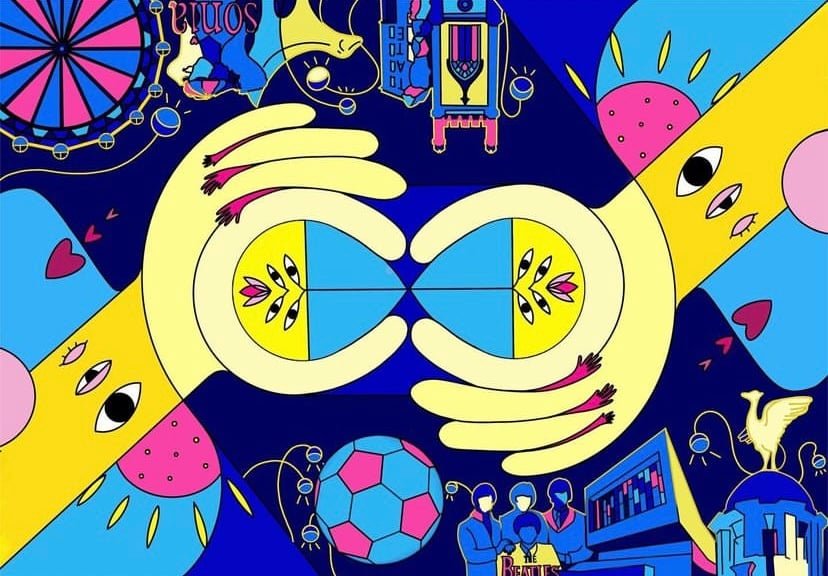 Тоді як Аліна з командою працювали в Кенії, дівчині запропонували розробити обкладинку для інфобуку Євробачення-2023. Цьогоріч конкурс проводять у Ліверпулі, проте з великою увагою до України та українців. Як розповідає Аліна, організатори хотіли бачити на обкладинці інфобуку роботу сучасного українського митця.