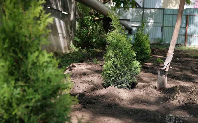 Щоб було зелено і затишно. Майже дев’ять десятків туй Чернівецькій обласній дитячій клінічній лікарні передали благодійники. Про це інформує Чернівецька обласна рада.