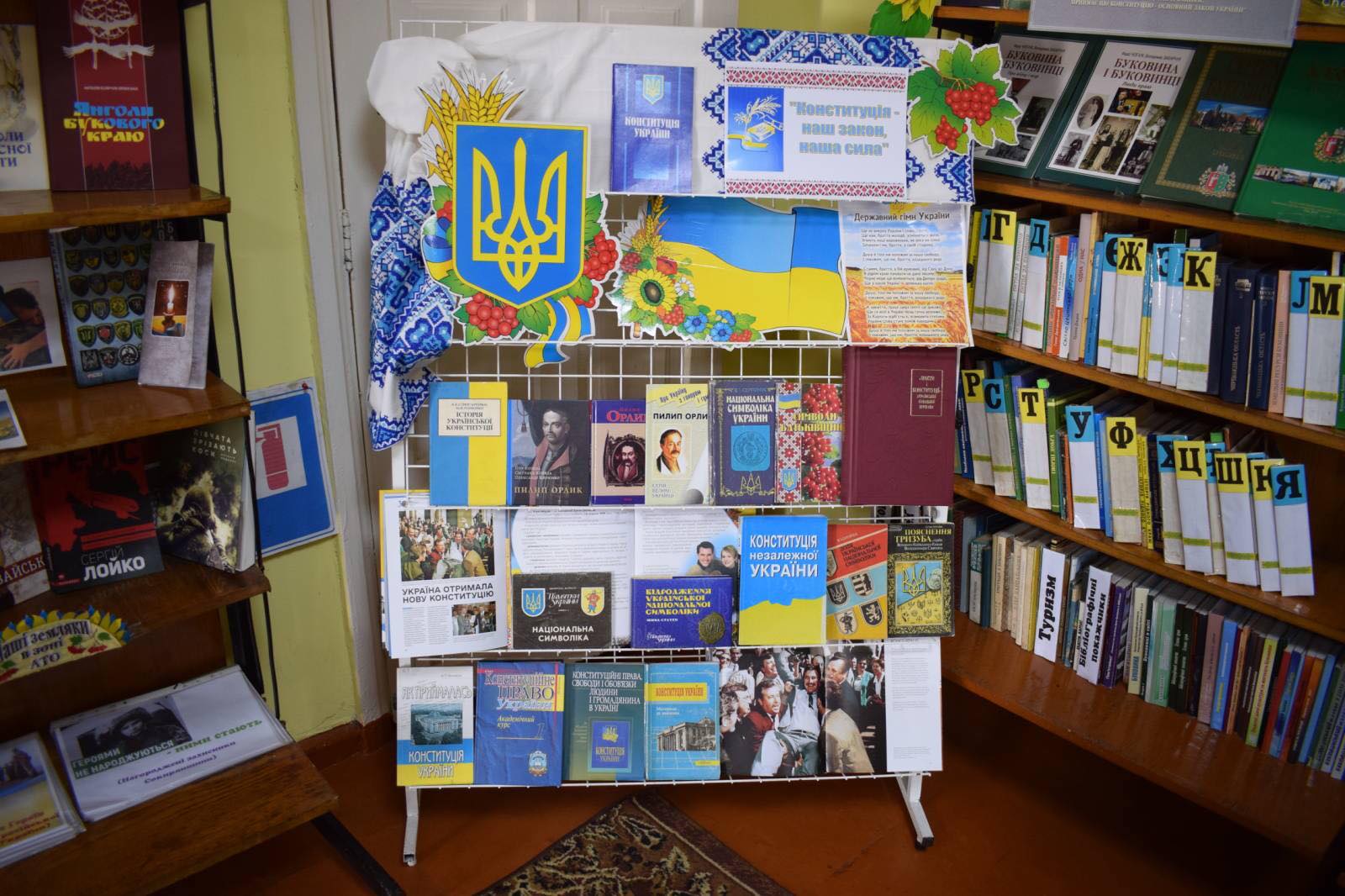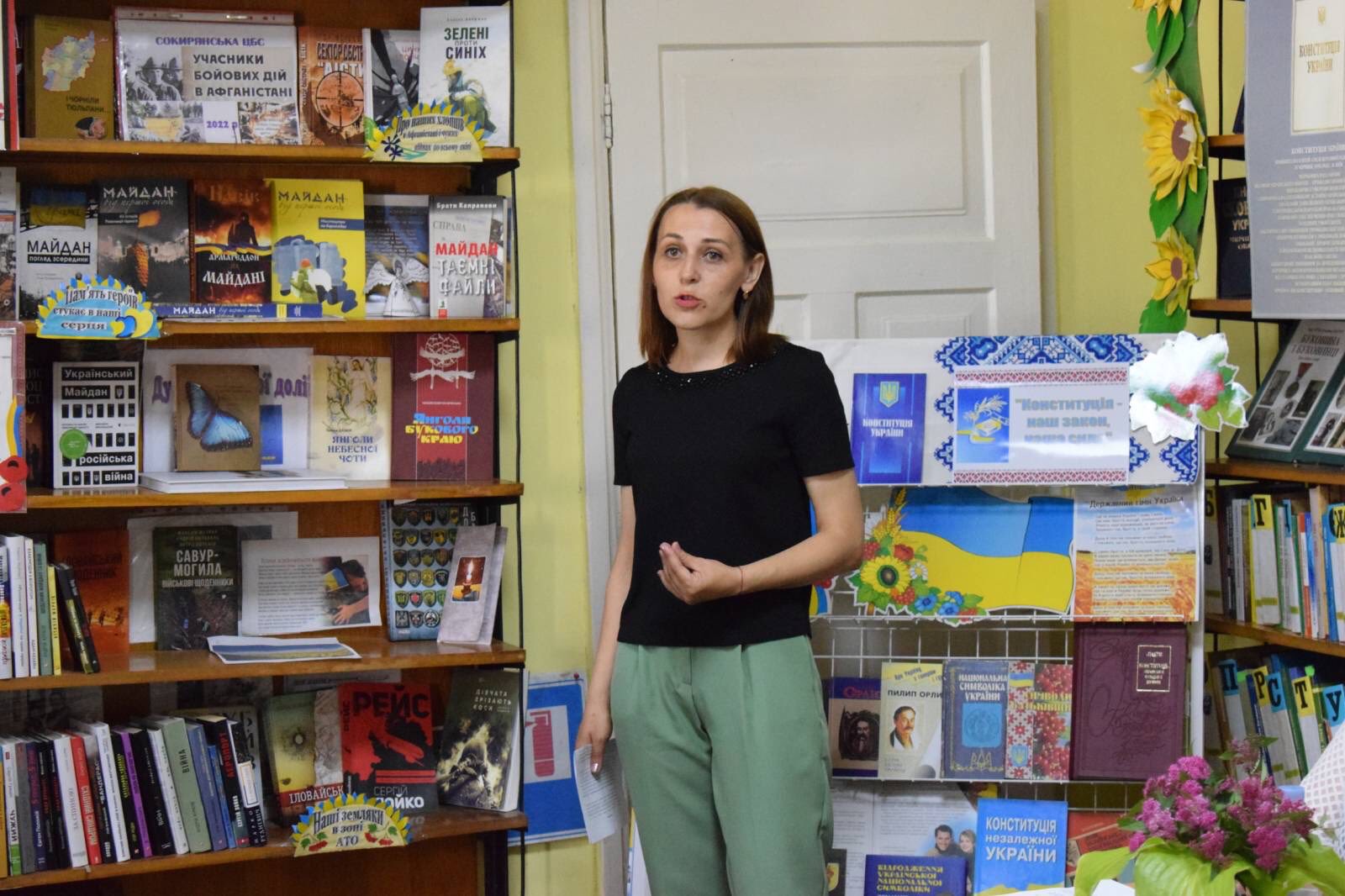 З цієї нагоди в Сокирянській центральній бібліотеці відбулась година державності «Конституція – основа держави», на яку завітали здобувачі освіти Сокирянського ВПУ з викладачем історії та правознавства Вікторією Урсатій, викладачем біології Тетяною Паращук.