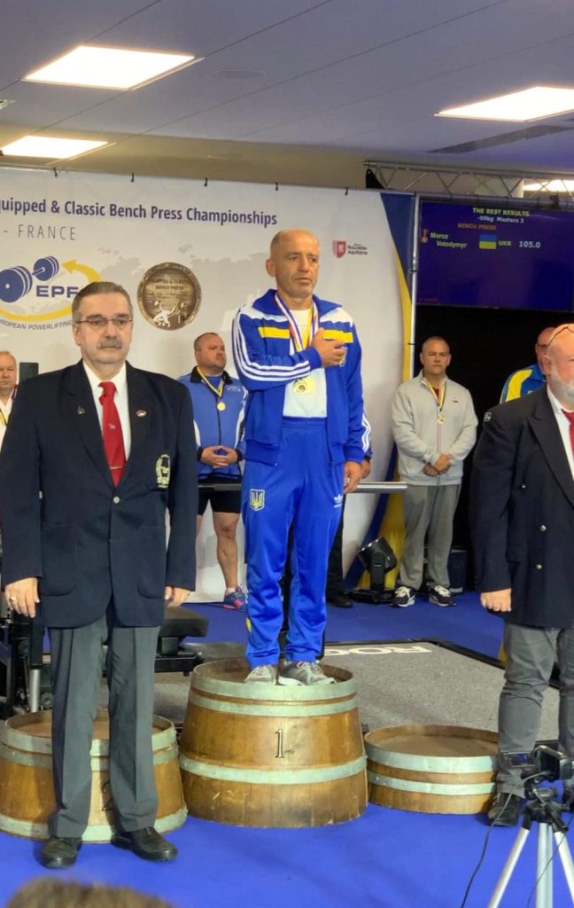Депутат Чернівецької обласної ради Володимир Мороз здобув титул чемпіона Європи з жиму лежачи серед ветеранів у ваговій категорії до 59 кілограмів.