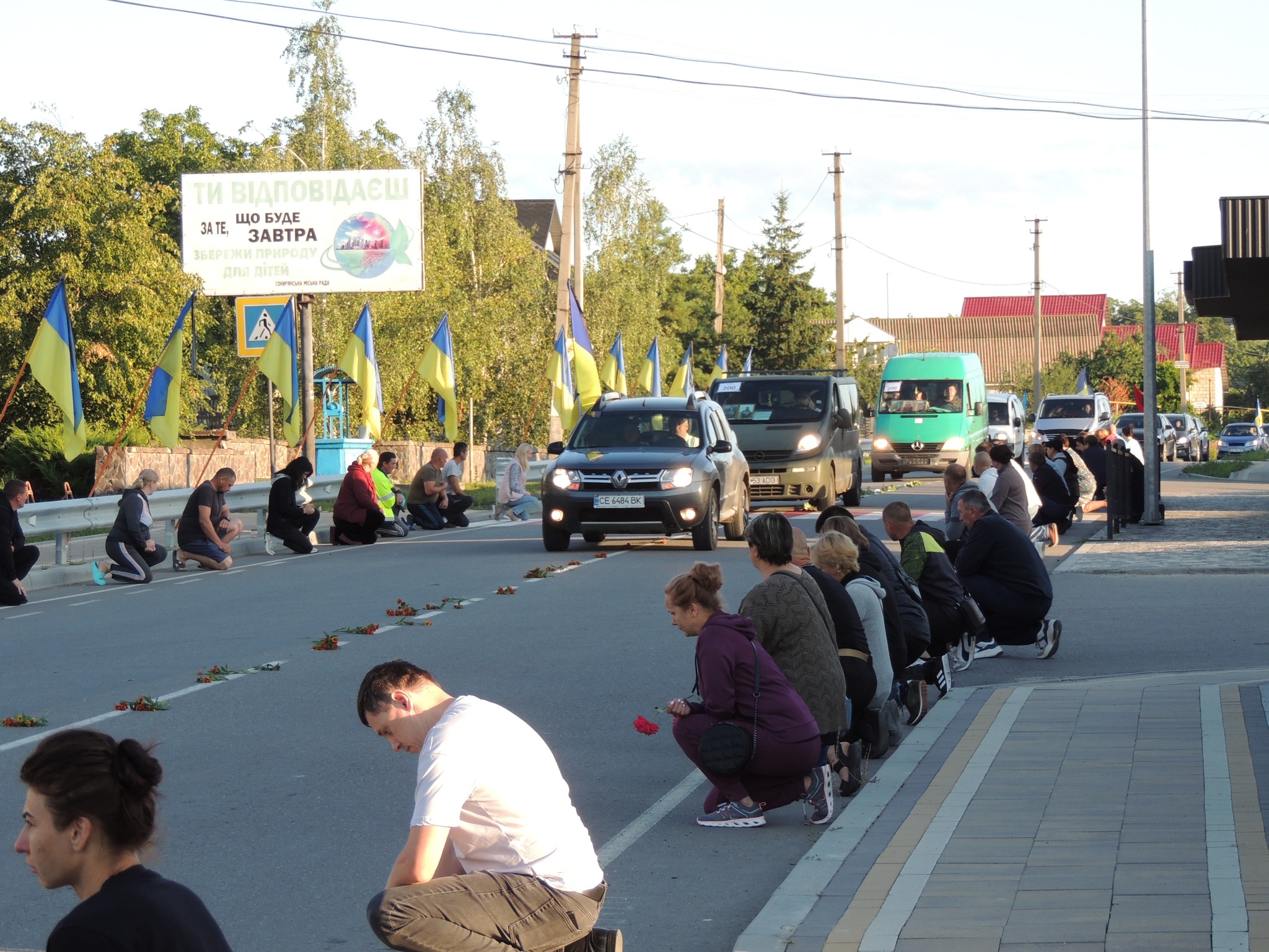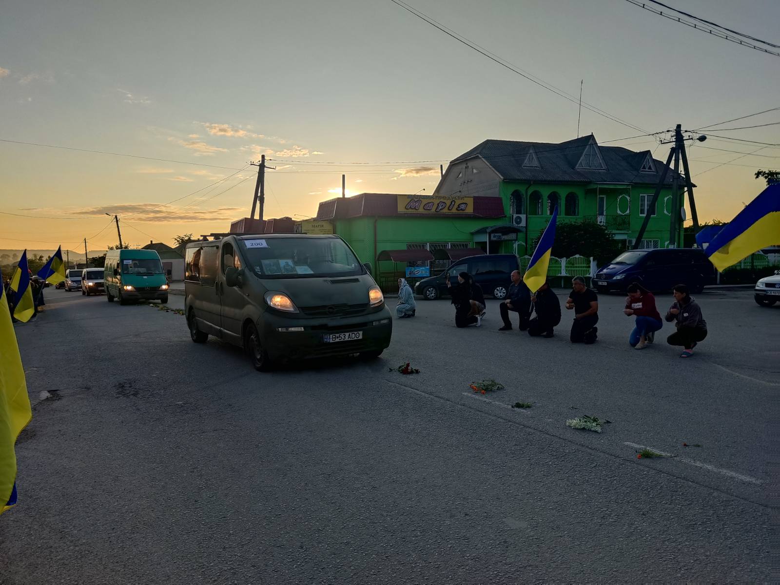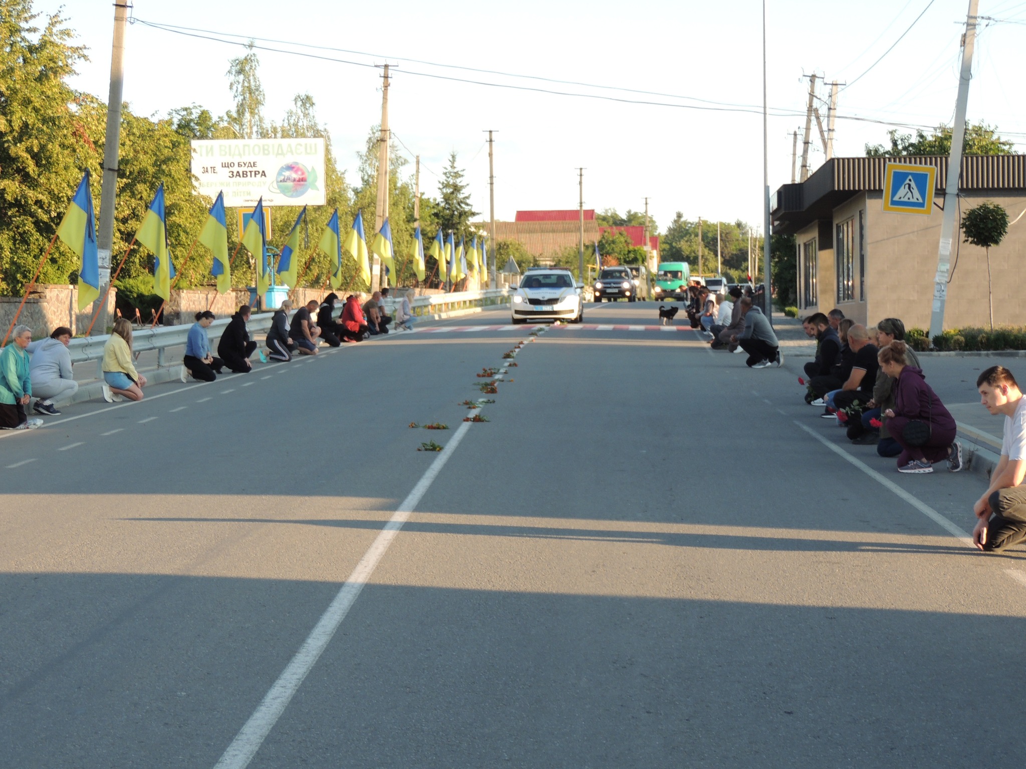Жителі краю зустрічали Героїв вздовж автошляхів громади – навколішки, з живими квітами, прапорами та невимовним болем…