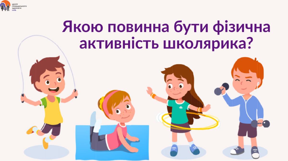 Рухова активність – життєва необхідність та одна з умов для розвитку дитини, тому цьому питанню потрібно приділяти неабияку увагу. Як правило, перехід дитини із дитячого садка до школи супроводжується значним зниженням рухової активності. Молодші школярі проводять лише 20% часу в русі, старшокласники – лише 15%.