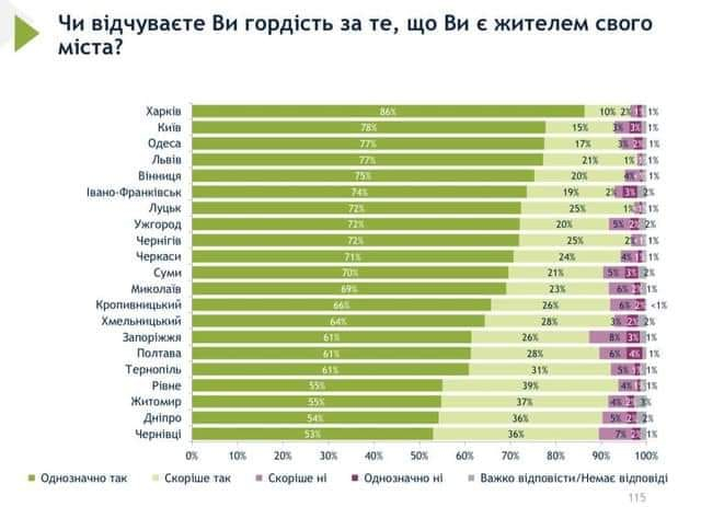 “Чи відчуваєте ви гордість за те, що ви є жителем свого міста?”. Відповідь «Однозначно, так»: