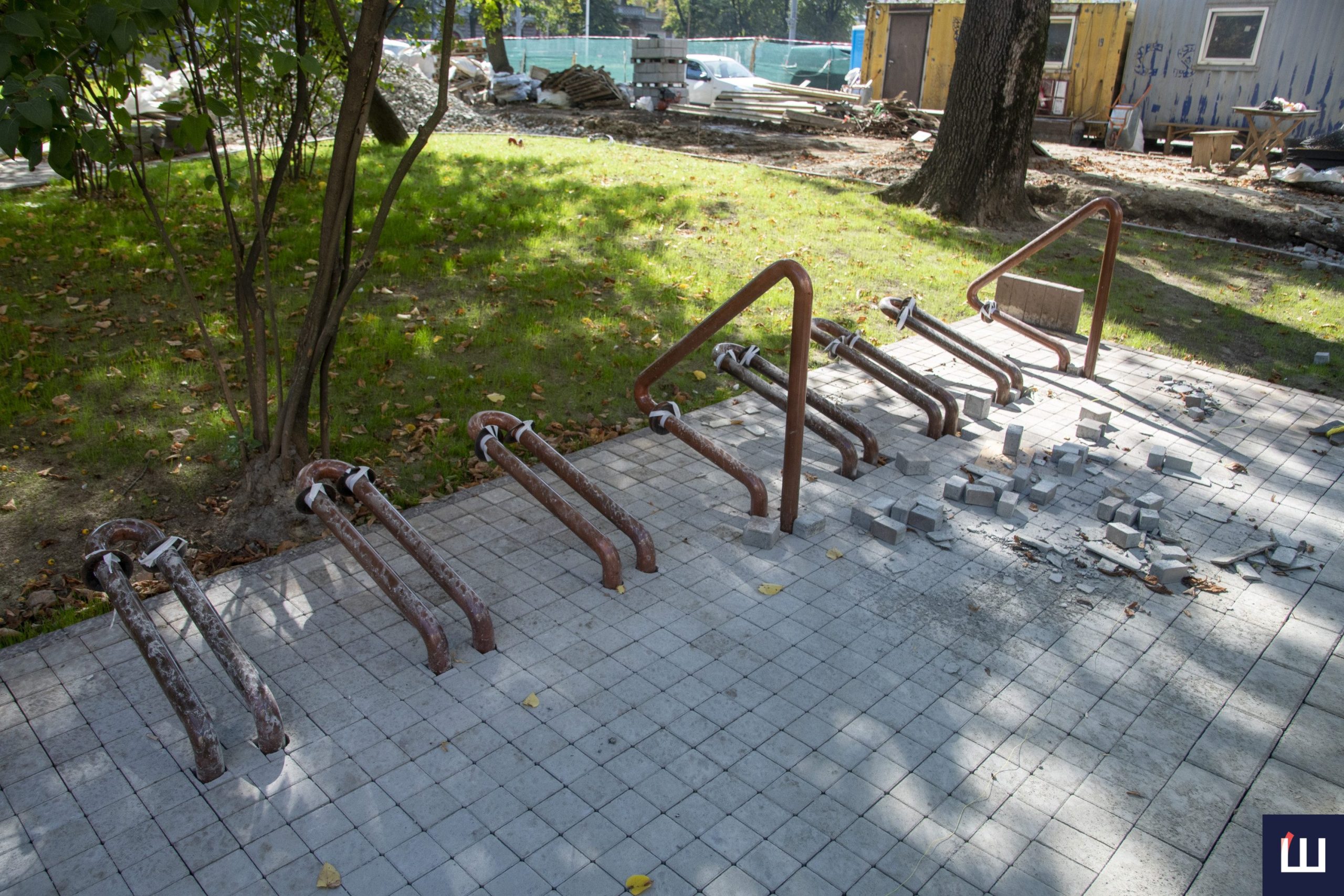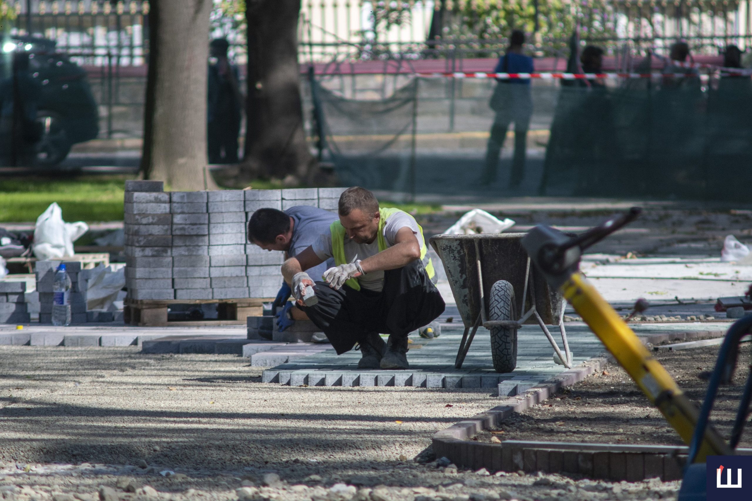 У Чернівцях триває реконструкція скверу Дня вишиванки. Наразі у сквері завершують замощення плиткою, встановлюють лавиці та смітники. Паралельно тривають роботи з озеленення.
