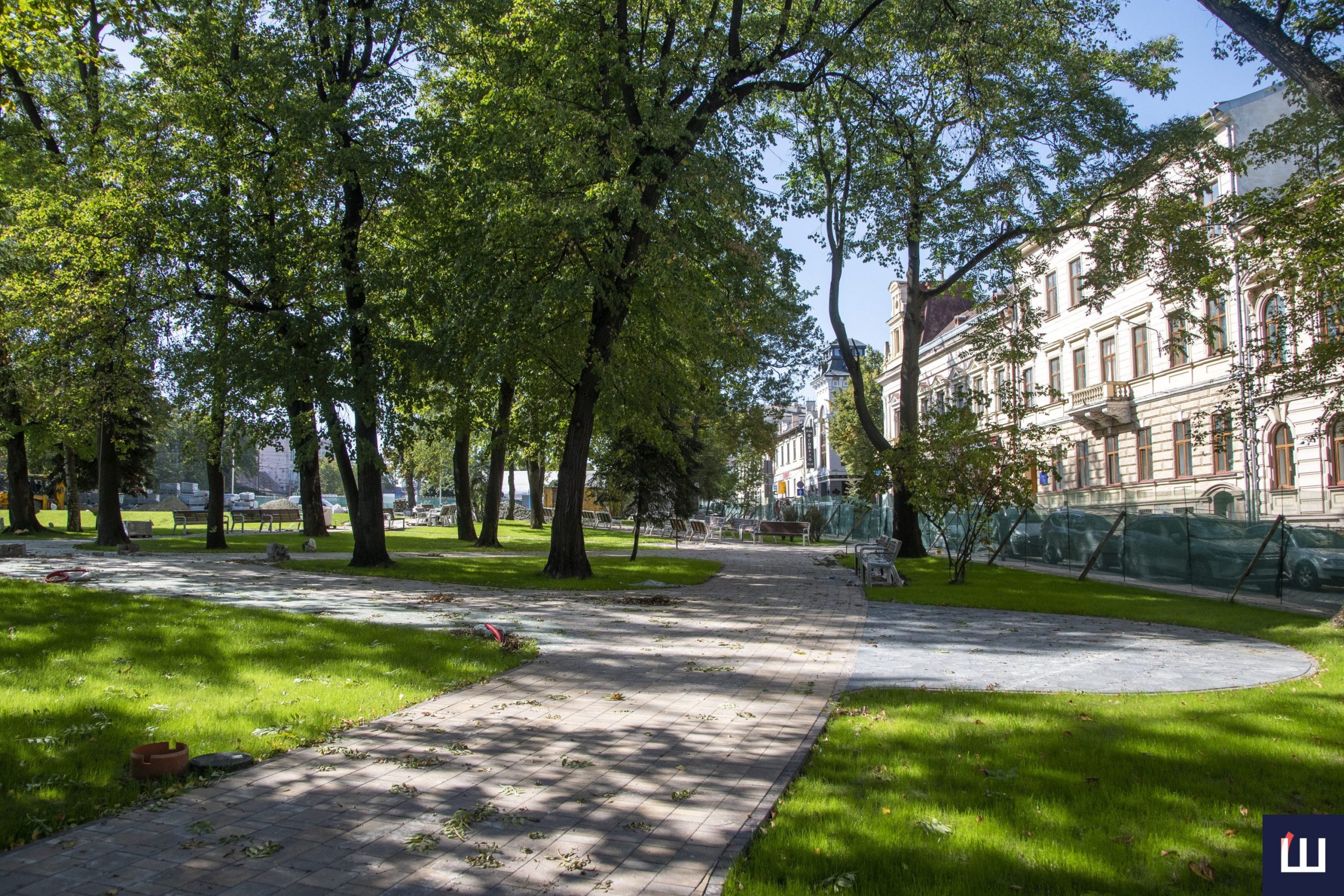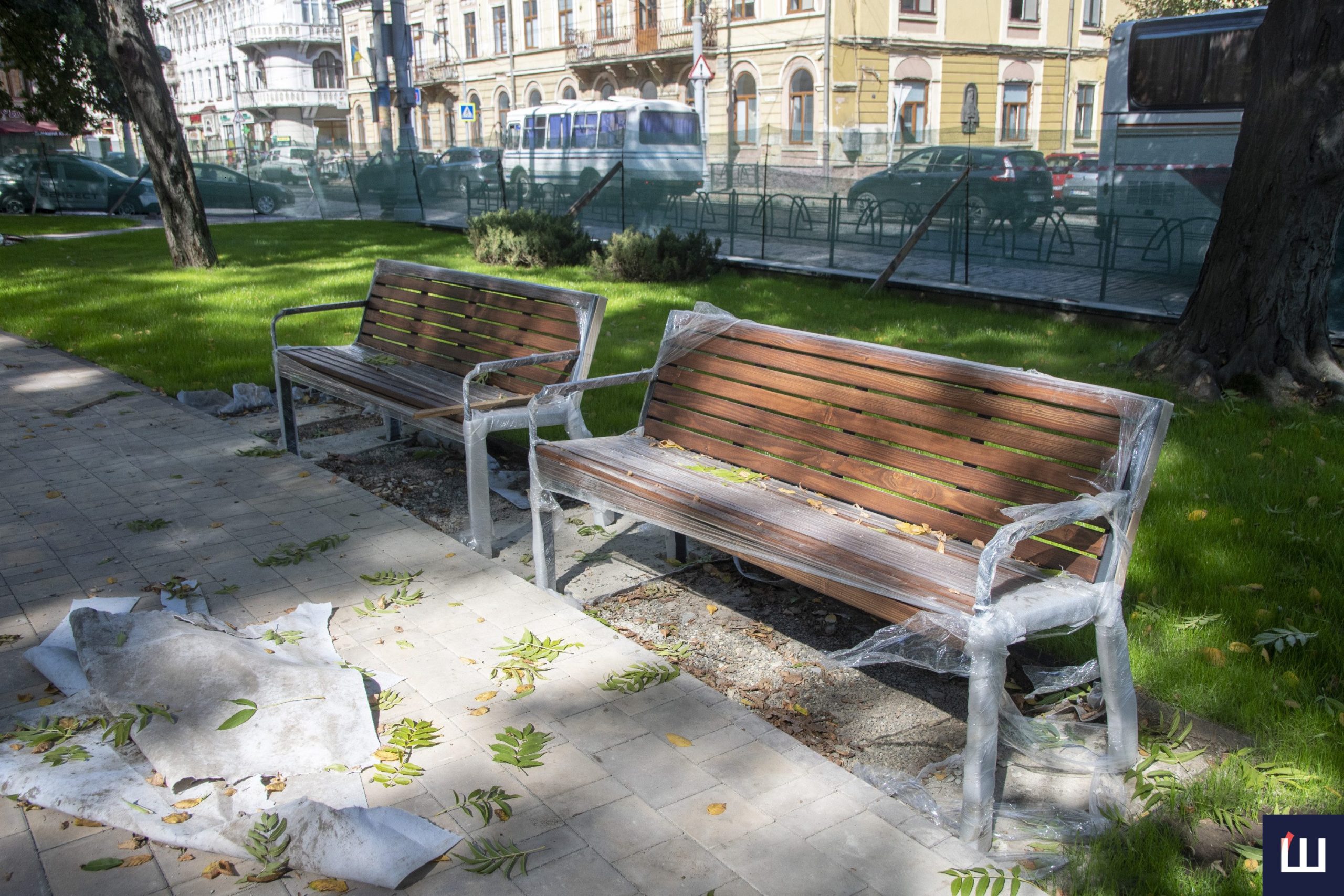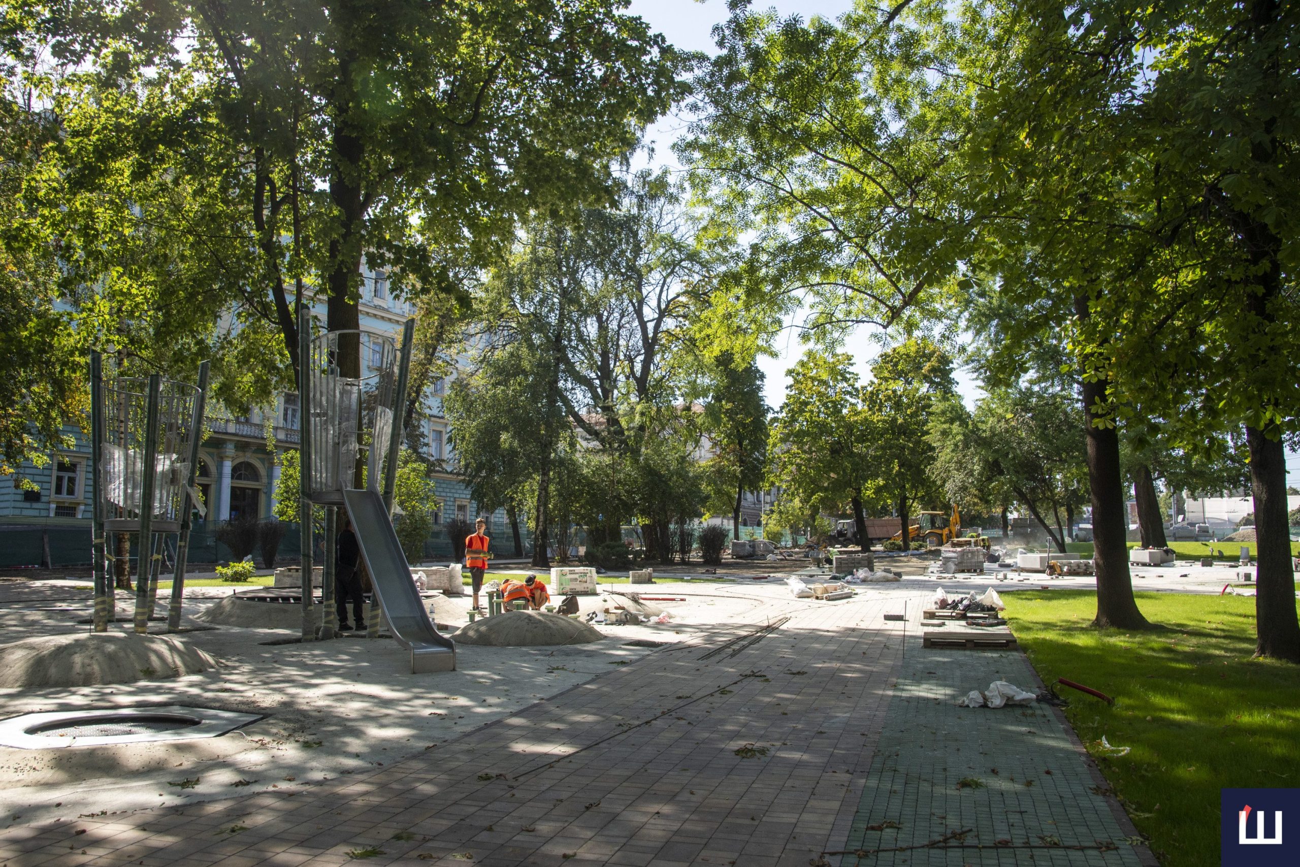 У сквері буде дитяча зона, плитка замість асфальту, простір для масових заходів та зелені зони з газонами для відпочинку. Також встановлять ліхтарі та спеціалізовану стрічку з декоративними елементами. Зараз її ще виготовляють.
