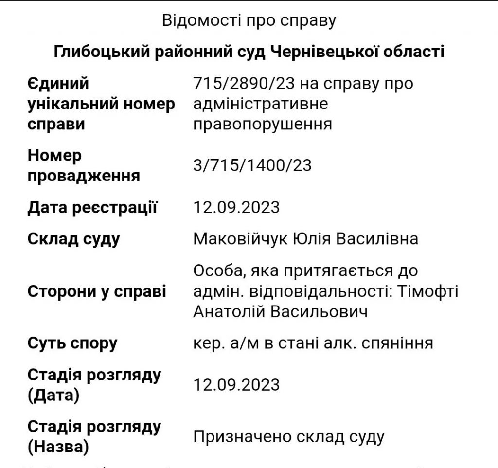 Заступника селищного голови Глибоцької громади Анатолія Тімофтія спіймали п’яним за кермом