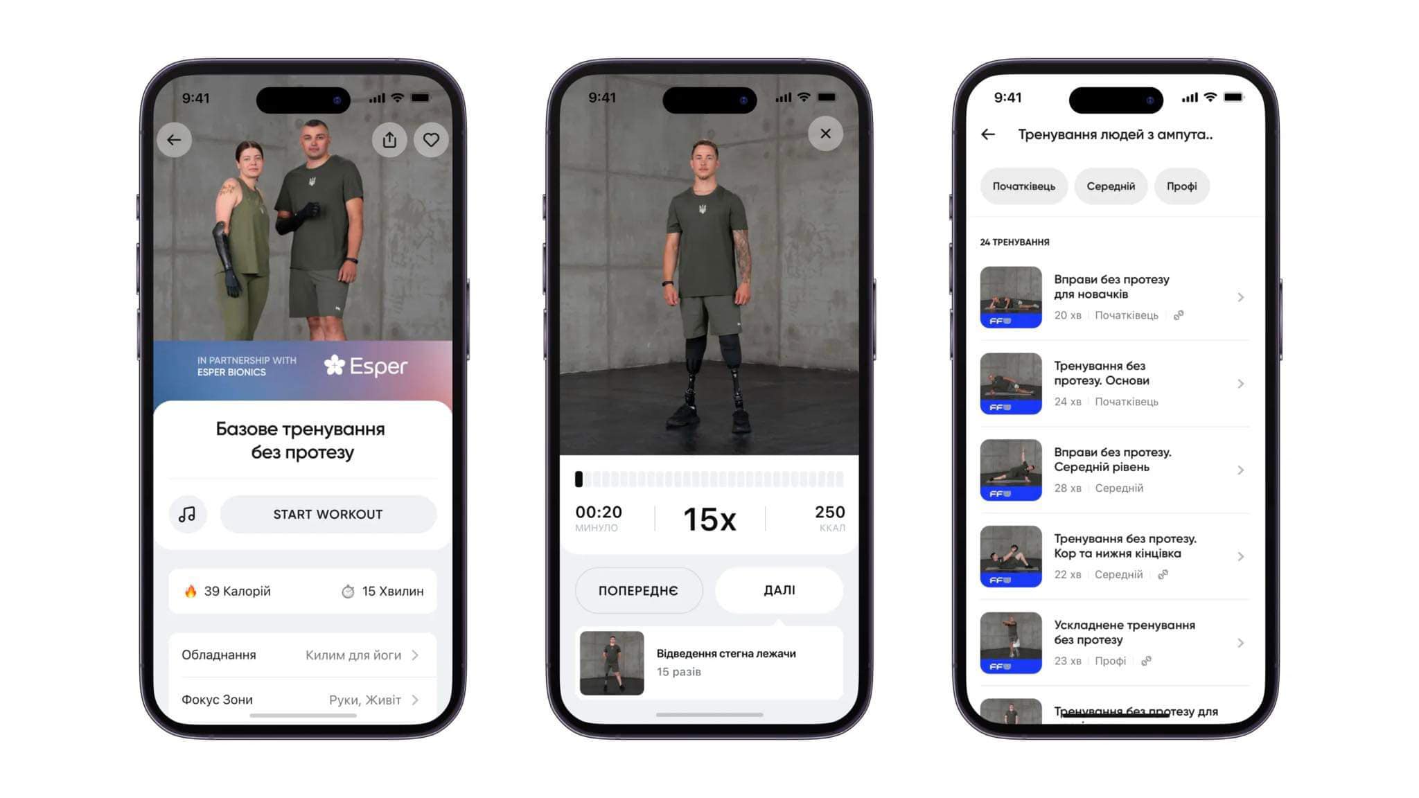 Нещодавно українська IT-компанія Better Me у співпраці з українським виробником біонічних протезів Esper Bionics та БФ “Future for Ukraine”, який займається протезуванням українських військових за кордоном, запустили програму тренувань для людей з ампутаціями у своєму застосунку Health Coaching.