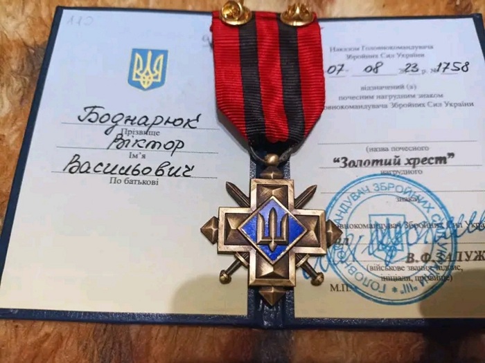 Віктор Васильович Боднарюк удостоєний нагрудного знаку «Золотий хрест» Головнокомандувача Збройних Сил України Валерія Залужного.