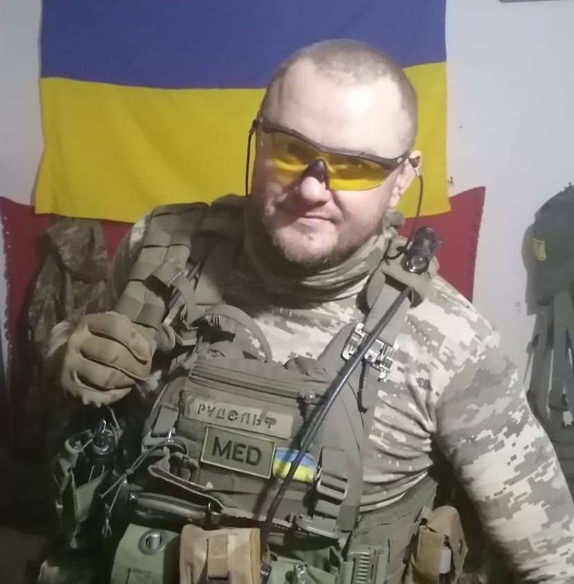 Військовий з позивним Рудольф пішов добровольцем на фронт у перші дні повномасштабного вторгнення. Був командиром взводу одного з батальйонів 107 окремої бригади Сил територіальної оборони ЗСУ та брав активну участь у звільненні Харківщини від російських військових.