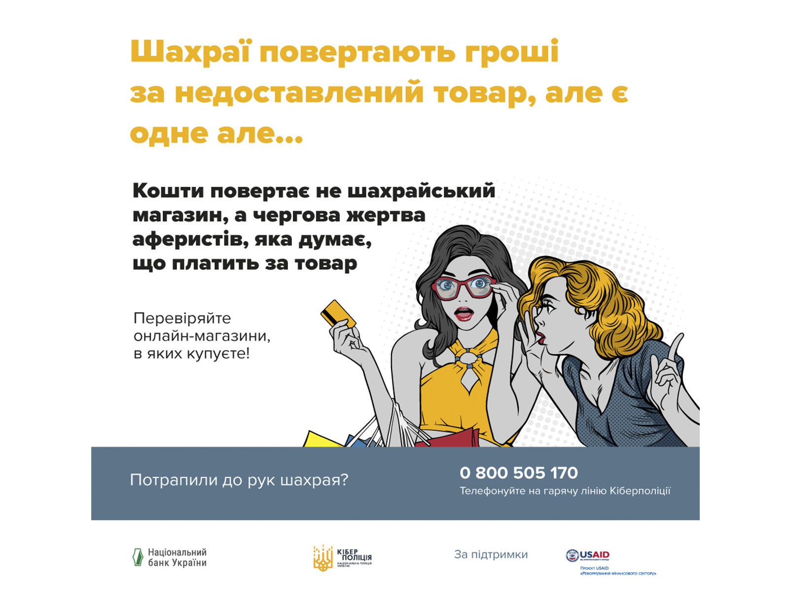 Як безпечно купувати онлайн, читайте на сайті НБУ #ШахрайГудбай: https://promo.bank.gov.ua/stopfraud/#section-21. Також там можна знайти інформацію, як відрізнити шахрайську сторінку інтернет-магазину в інстаграмі від справжньої.