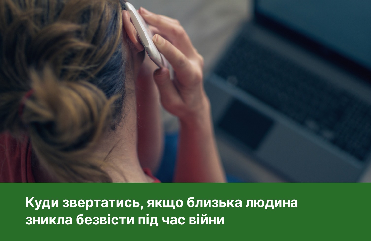 До Національного інформаційного бюро (НІБ). Тут збирають та обробляють інформацію про осіб, зниклих безвісти, незаконно переміщених, полонених та загиблих. Детальніше: https://nib.gov.ua/