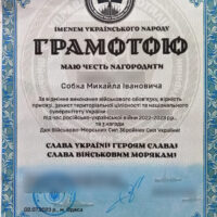 За сумлінне виконання військового обов’язку, вірність присязі, захист територіальної цілісності та національного суверенітету України під час російсько-української війни 2022-2023 років, Михайла Собка відзначено Грамотами флотилії Військово-морських сил ЗСУ.
